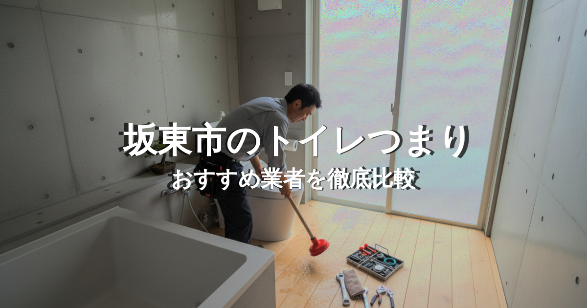 坂東市で突然のトイレつまり(水漏れ・つまり等)でお困りですか?「どこに頼めばいいかわからない」「高額請求やぼったくりが不安」という方のために、坂東市の料金相場や、失敗しない水道業者の選び方を徹底ご案内します。さらに、悪徳業者の見分け方やDIYで対処できる範囲まで、水道トラブルで後悔しないための情報を網羅的にお届けします。優良な業者を見つけて、早くトラブルを解決しましょう。