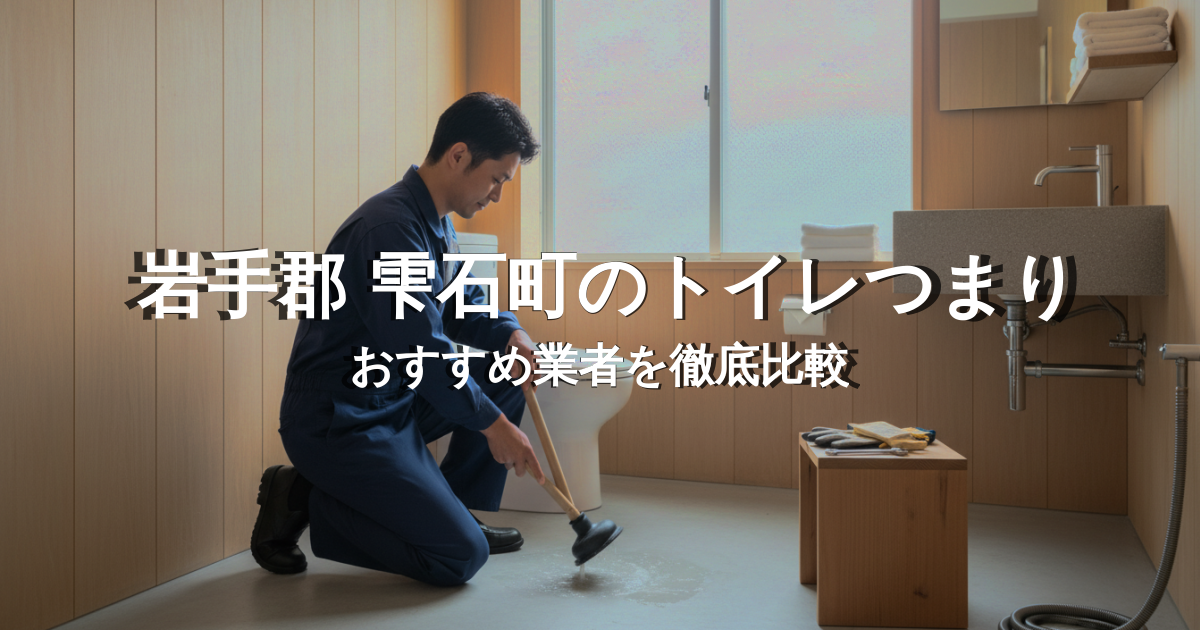 岩手郡 雫石町で突然のトイレつまり(水漏れ・つまり等)でお困りですか?「どこに頼めばいいかわからない」「高額請求やぼったくりが不安」という方のために、岩手郡 雫石町の料金相場や、失敗しない水道業者の選び方を徹底ご案内します。さらに、悪徳業者の見分け方やDIYで対処できる範囲まで、水道トラブルで後悔しないための情報を網羅的にお届けします。優良な業者を見つけて、早くトラブルを解決しましょう。